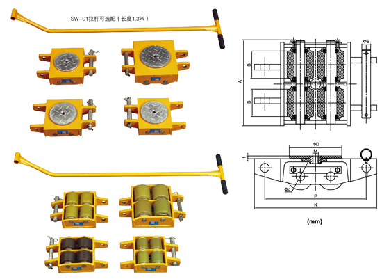 ● 與撬棒或千斤頂配合使用,可用于重型貨物的搬運。大直徑尼龍輪(10噸型號配備鋼輪)幫助搬運更省力,更好地保護地面以防受損。 ● 出于安全考慮,特別重的物體通常要用4只托輥來運輸。 ● 在選擇托輥的承重能力時,要將重型貨物的重量除以3舉例來說,如果你要搬運一臺9噸重的設(shè)備,請選擇4臺SW30(最大承重為3噸) ● 大尺寸尼龍滑動輪能保證移動安全、均勻分布載荷,保護地面,并避免油脂污染地面。 ● 免維護滑動輪可與手柄搭配,貨物搬運更加方便、輕松。 ● 托輥為鋼制表面,穩(wěn)定性更強。
