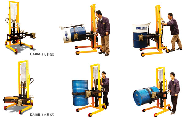 ●DA40A適用于鋼制油桶的搬運(yùn),DA40B適用于鋼制油桶或塑料油桶的搬運(yùn)