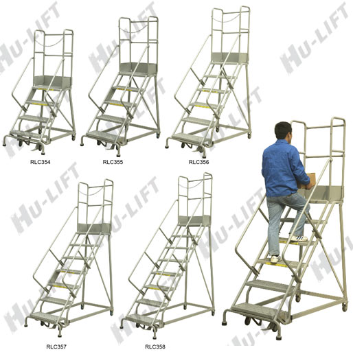 ● 配置踏板鎖定機(jī)構(gòu).踩壓底部踏板可自動(dòng)固定梯子;踩壓底部踏板下方的解除鎖定壓桿,便可輕松移動(dòng)取貨梯